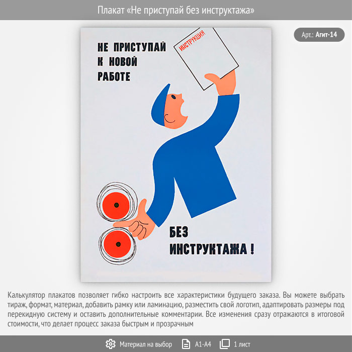 Плакат «Не приступай без инструктажа» (Агит-14, 1 лист) в Старом Осколе купить