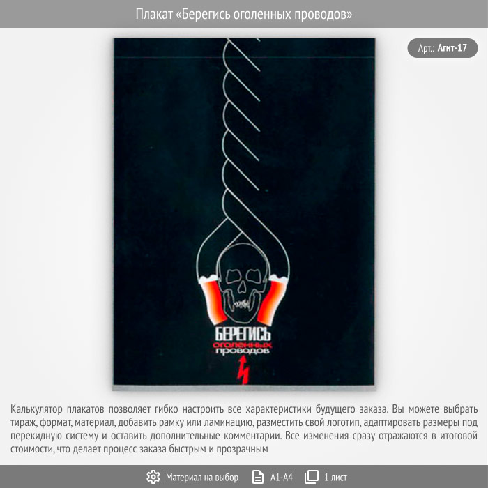 Плакат «Берегись оголенных проводов» (Агит-17, 1 лист) в Старом Осколе купить