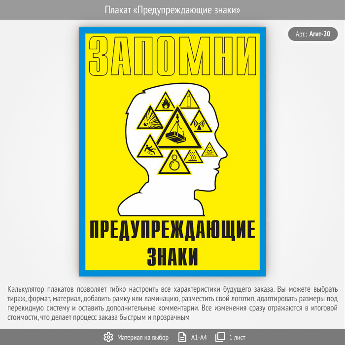 Плакат «Предупреждающие знаки» (Агит-20, 1 лист) в Старом Осколе купить