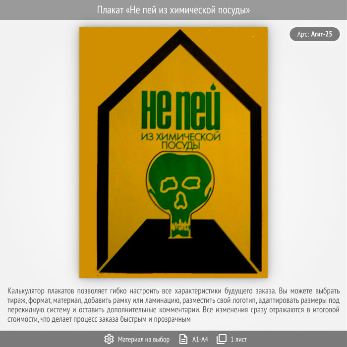 Плакат «Не пей из химической посуды» (Агит-25, 1 лист) в Старом Осколе купить