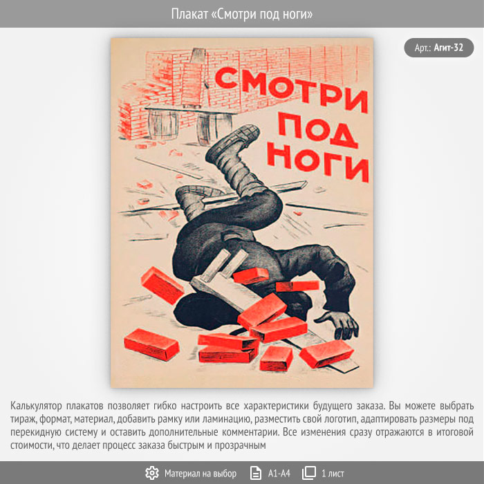 Плакат «Смотри под ноги» (Агит-32, 1 лист) в Старом Осколе купить