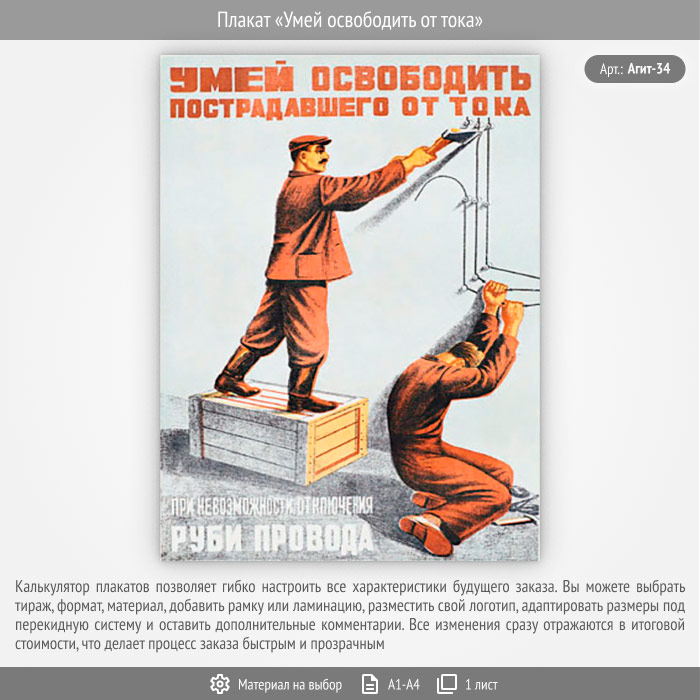 Плакат «Умей освободить от тока» (Агит-34, 1 лист) в Старом Осколе купить