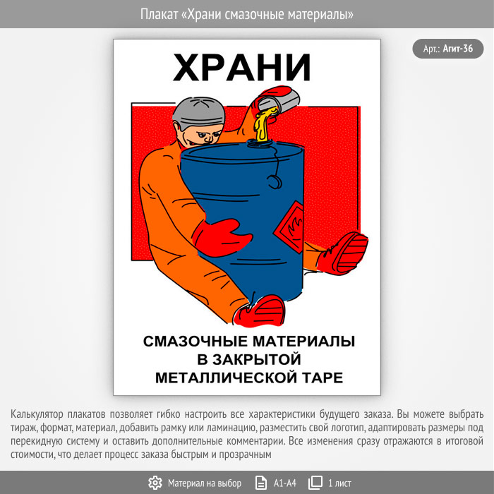 Плакат «Храни смазочные материалы» (Агит-36, 1 лист) в Старом Осколе купить