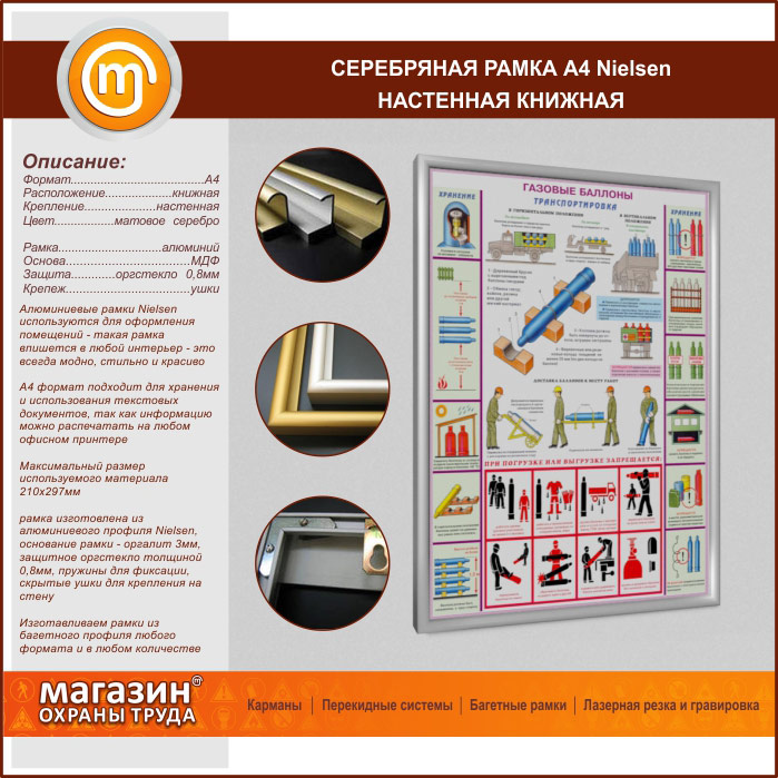 Багетная настенная рамка «Nielsen» А4 формата, книжная, матовое серебро в Старом Осколе купить