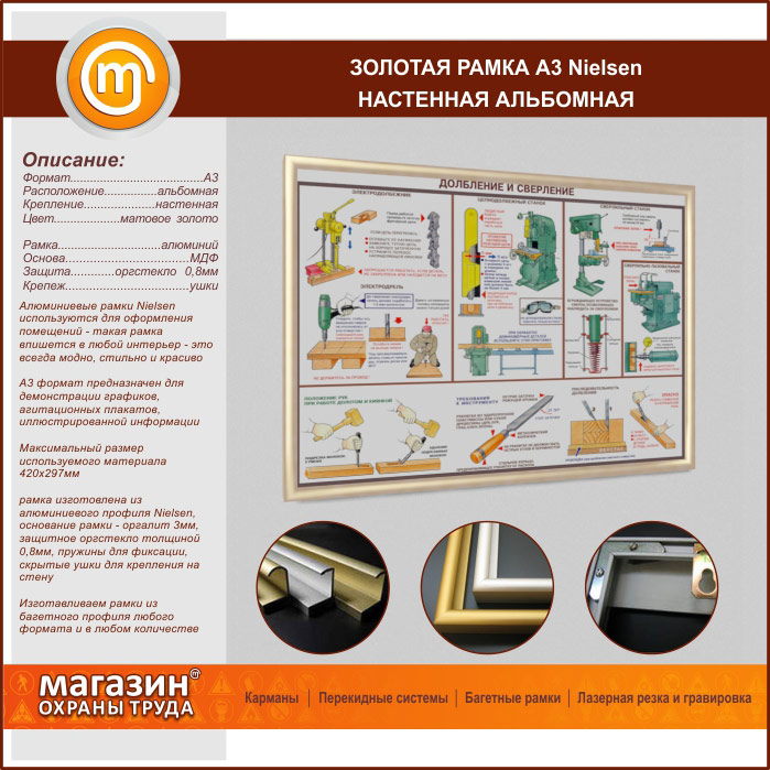 Багетная настенная рамка «Nielsen» А3 формата, альбомная, матовое золото в Старом Осколе купить