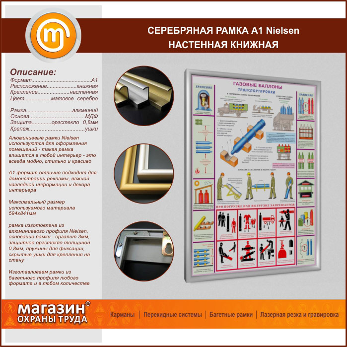 Багетная настенная рамка «Nielsen» А1 формата, книжная, матовое серебро в Старом Осколе купить