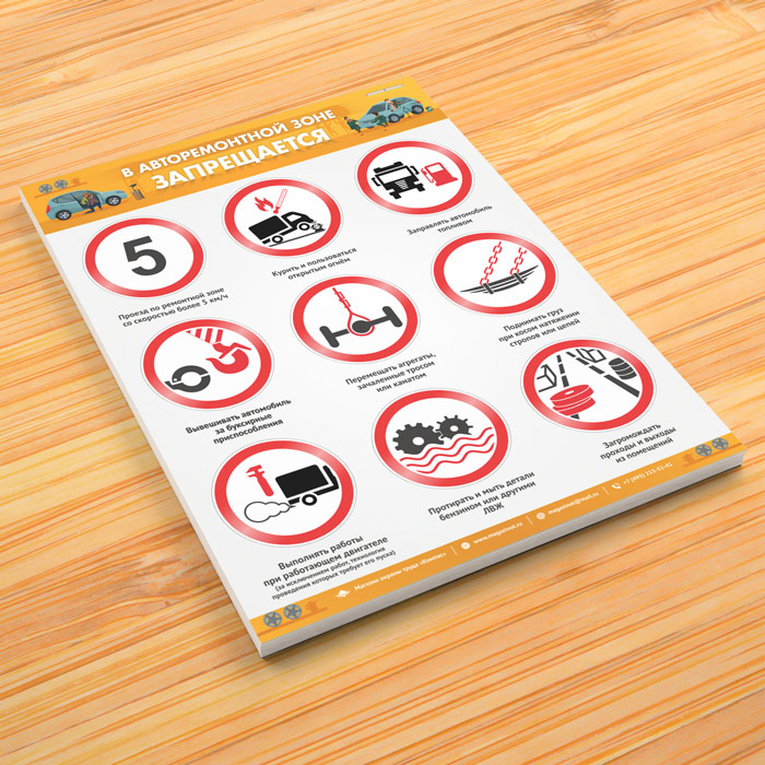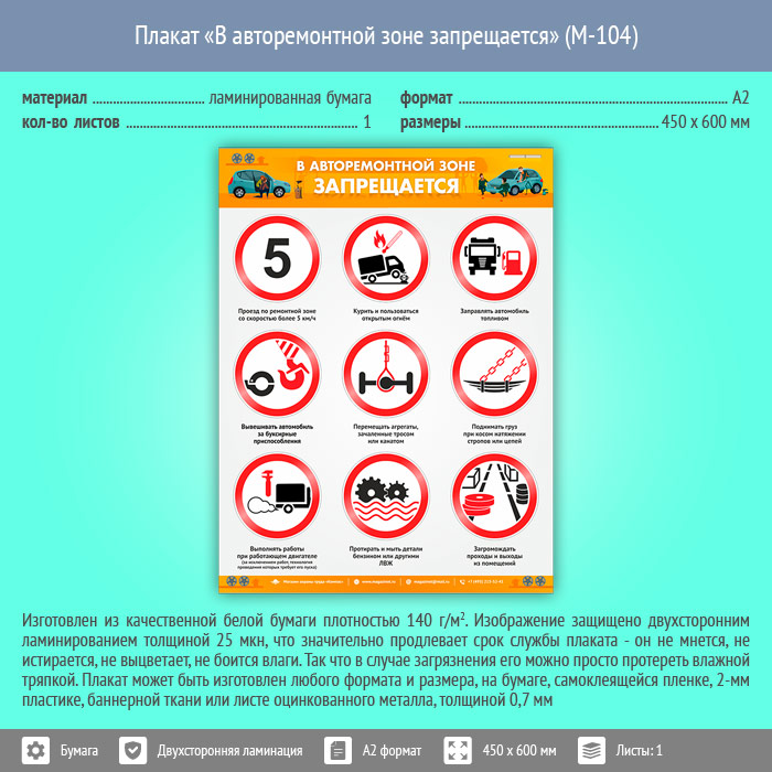 Плакат «В авторемонтной зоне запрещается» (М-104, ламинированная бумага, А2, 1 лист) в Старом Осколе купить
