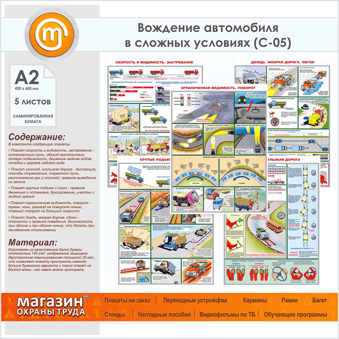 Плакаты «Вождение автомобиля в сложных условиях» (С-05, ламинированная бумага, А2, 5 листов) в Старом Осколе купить