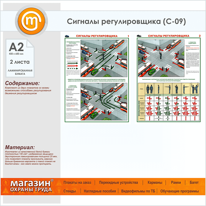 Плакаты «Сигналы регулировщика» (С-09, ламинированная бумага, А2, 2 листа) в Старом Осколе купить
