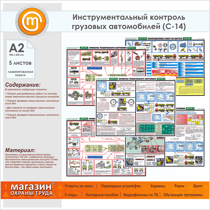 Плакаты «Инструментальный контроль грузовых автомобилей» (С-14, ламинированная бумага, А2, 5 листов) в Старом Осколе купить