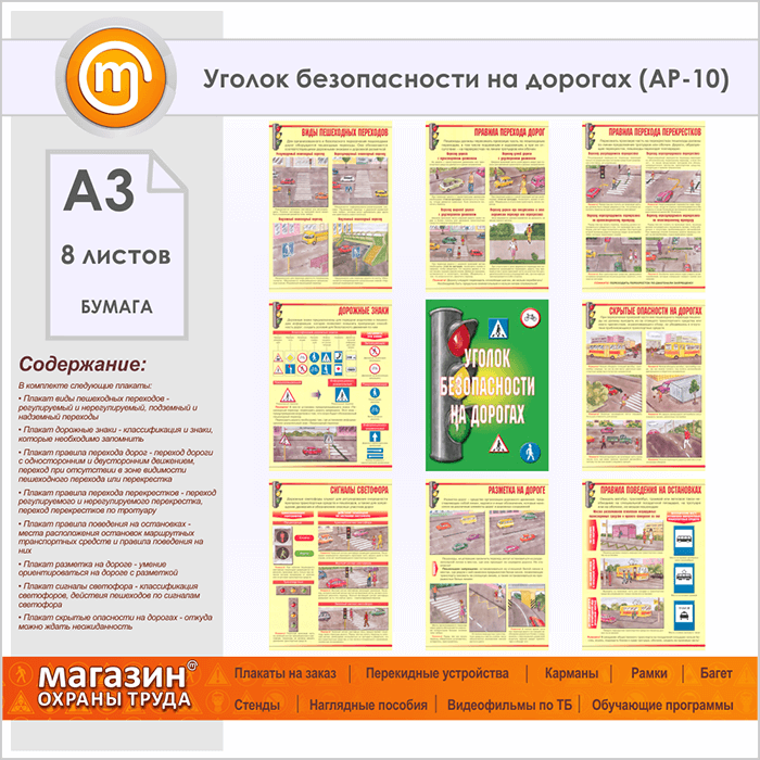Плакаты «Уголок безопасности на дорогах» (АР-10, бумага, А3, 8 листов) в Старом Осколе купить