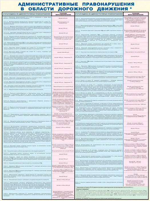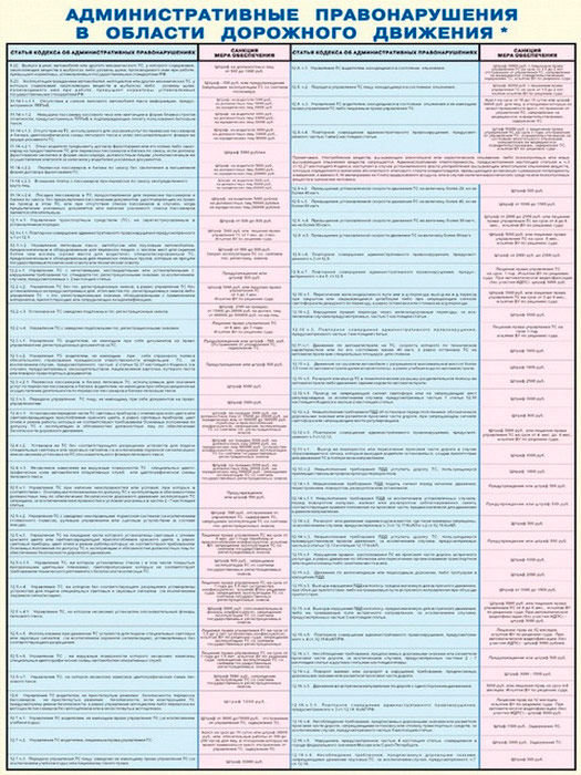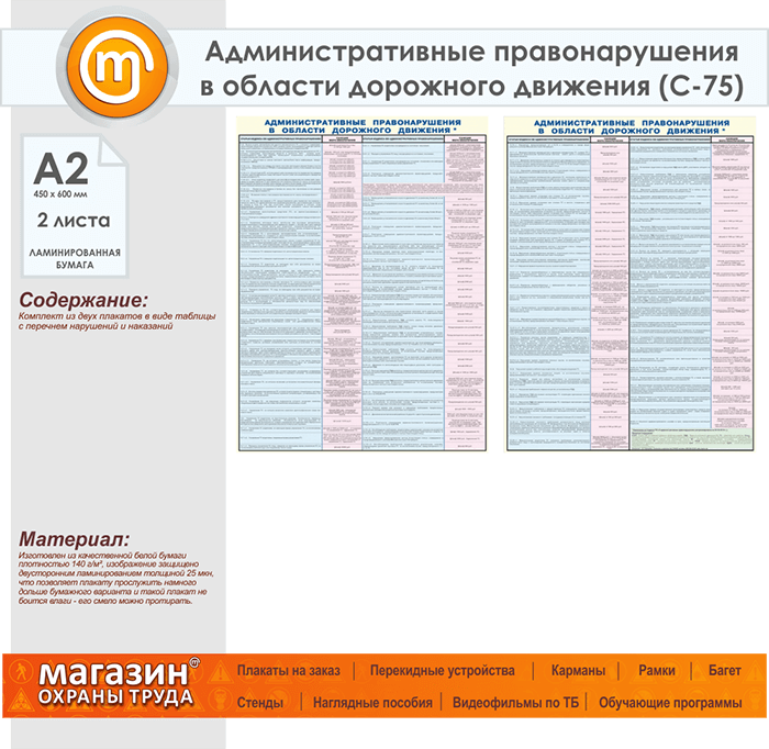 Плакаты «Административные правонарушения в области дорожного движения» (С-75, ламинированная бумага, А2, 2 листа) в Старом Осколе купить