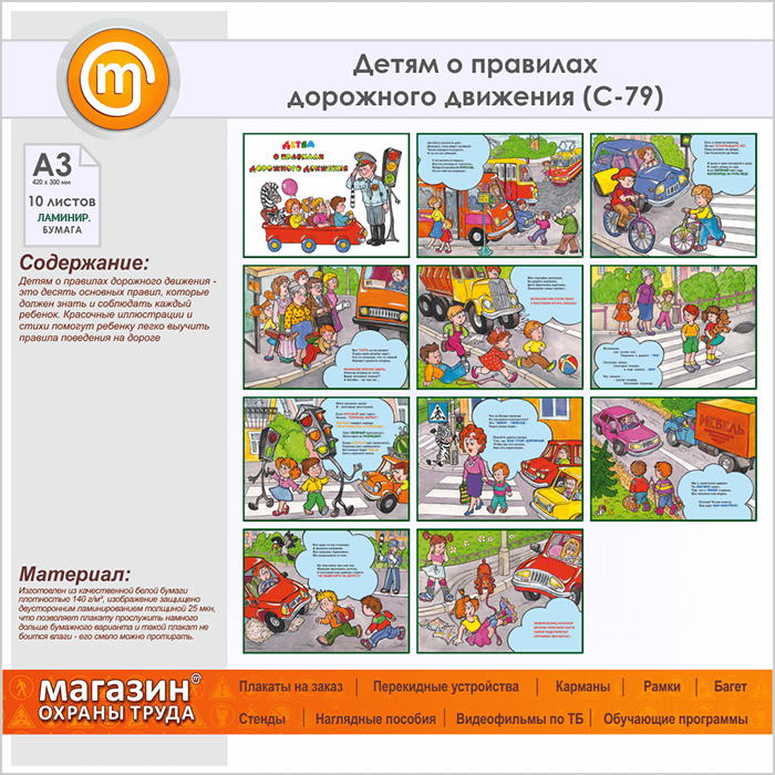 Плакаты «Детям о правилах дорожного движения» (С-79, ламинированная бумага, А3, 10 листов) в Старом Осколе купить