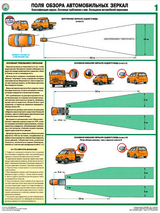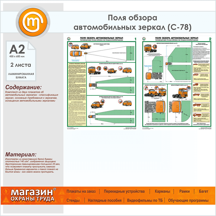 Плакаты «Поля обзора автомобильных зеркал» (С-78, ламинированная бумага, А2, 2 листа) в Старом Осколе купить