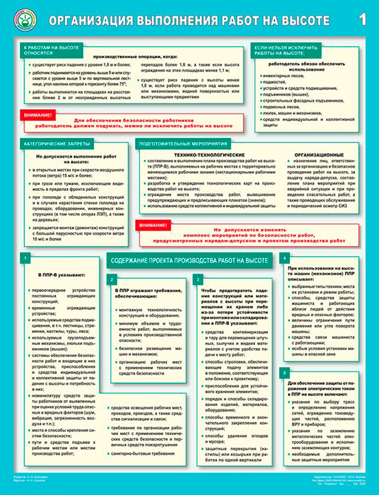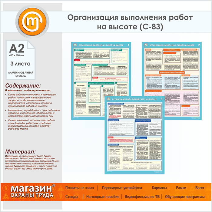 Плакаты «Организация выполнения работ на высоте» (С-83, ламинированная бумага, А2, 3 листа) в Старом Осколе купить