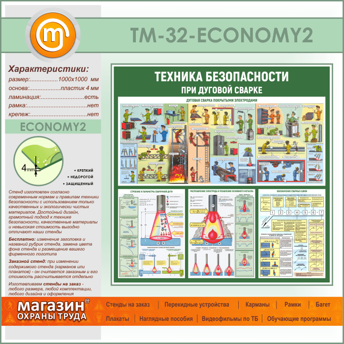 Стенд «Техника безопасности при дуговой сварке» (TM-32-ECONOMY2) в Старом Осколе купить