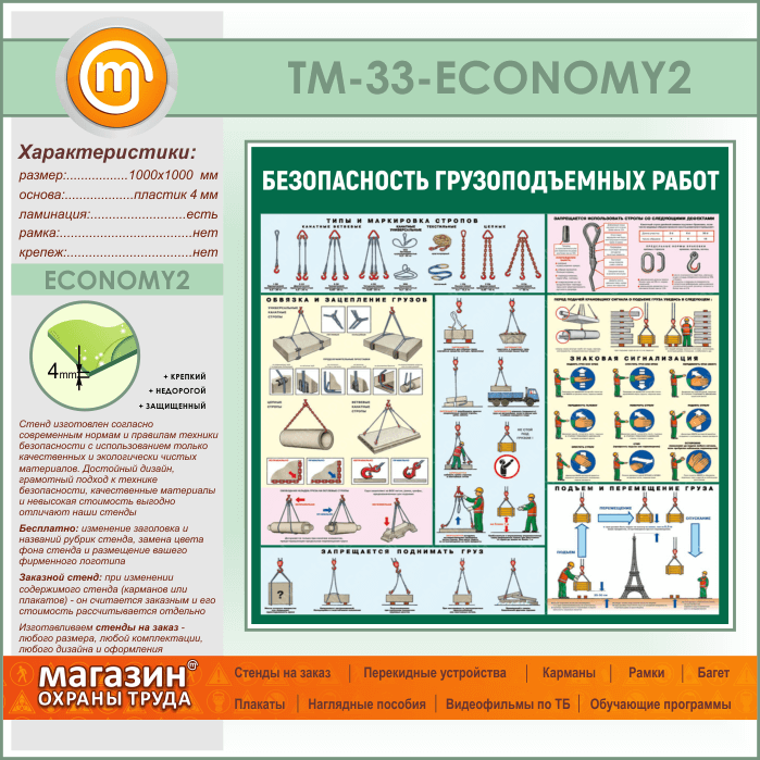 Стенд «Безопасность грузоподъемных работ» (TM-33-ECONOMY2) в Старом Осколе купить