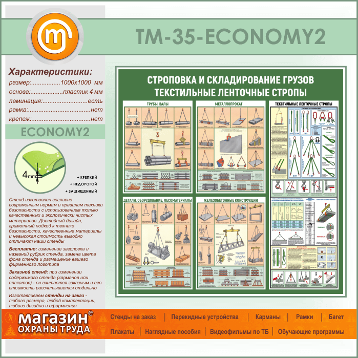 Стенд «Строповка и складирование грузов. Текстильные ленточные стропы» (TM-35-ECONOMY2) в Старом Осколе купить