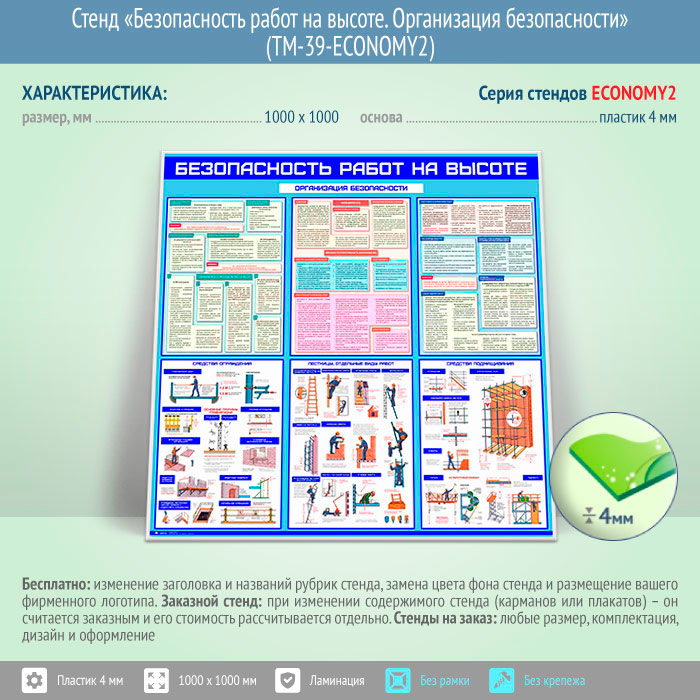 Стенд «Безопасность работ на высоте. Организация безопасности» (TM-39-ECONOMY2) в Старом Осколе купить
