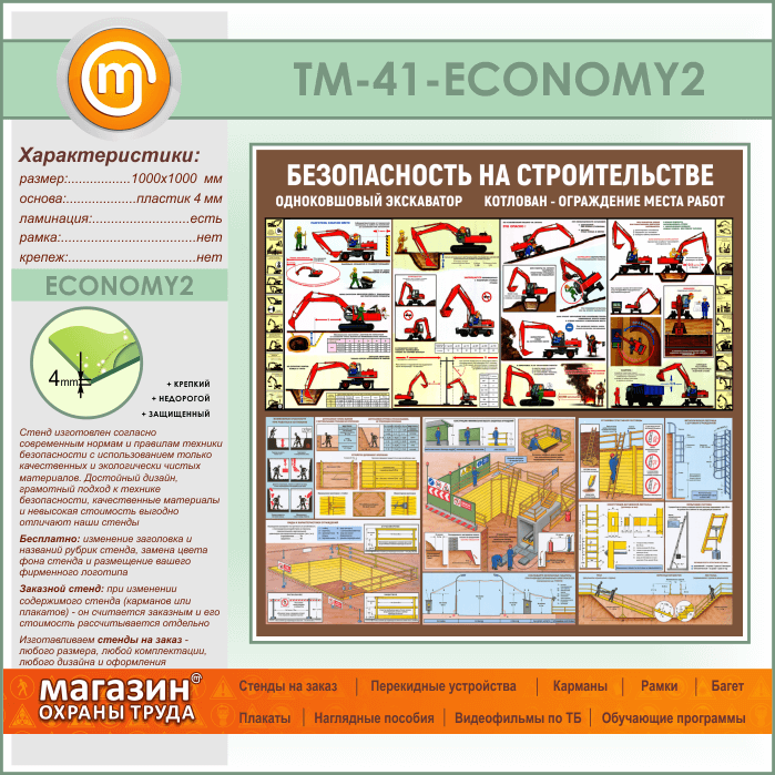 Стенд «Безопасность земляных работ. Экскаватор, котлован» (TM-41-ECONOMY2) в Старом Осколе купить