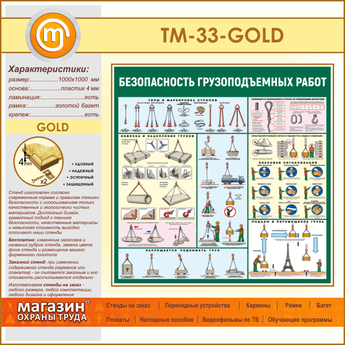Стенд «Безопасность грузоподъемных работ» (TM-33-GOLD) в Старом Осколе купить