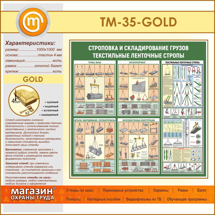 Стенд «Строповка и складирование грузов. Текстильные ленточные стропы» (TM-35-GOLD) в Старом Осколе купить