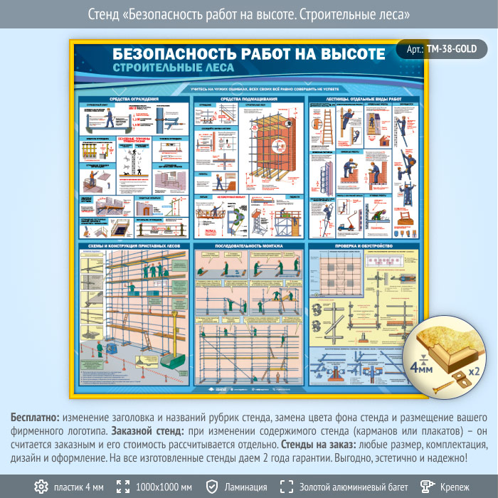 Стенд «Безопасность работ на высоте. Строительные леса» (TM-38-GOLD) в Старом Осколе купить
