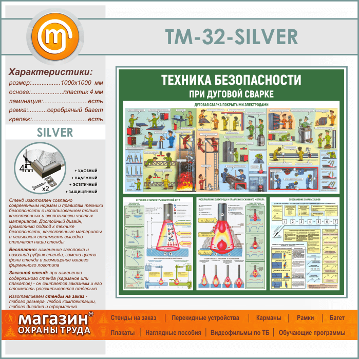 Стенд «Техника безопасности при дуговой сварке» (TM-32-SILVER) в Старом Осколе купить