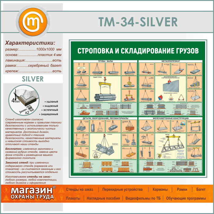Стенд «Строповка и складирование грузов» (TM-34-SILVER) в Старом Осколе купить