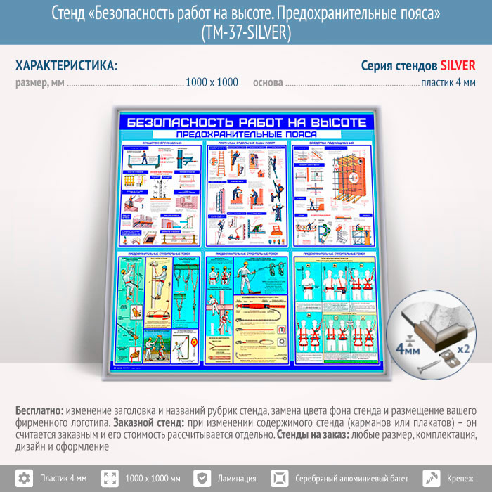 Стенд «Безопасность работ на высоте. Предохранительные пояса» (TM-37-SILVER) в Старом Осколе купить