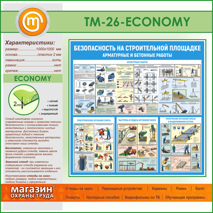 Стенд «Безопасность на строительной площадке. Арматурные и бетонные работы» (TM-26-ECONOMY) в Старом Осколе купить