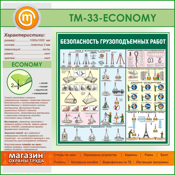 Стенд «Безопасность грузоподъемных работ» (TM-33-ECONOMY) в Старом Осколе купить