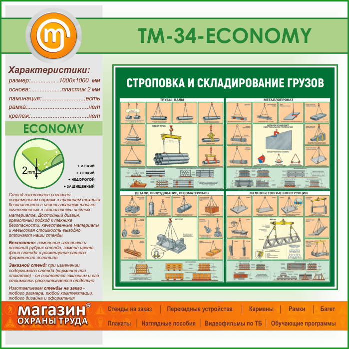 Стенд «Строповка и складирование грузов» (TM-34-ECONOMY) в Старом Осколе купить