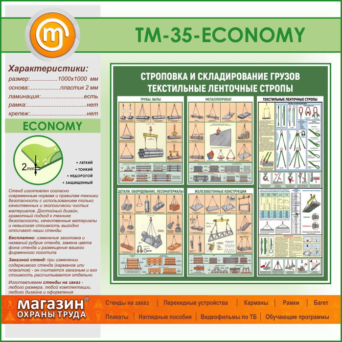 Стенд «Строповка и складирование грузов. Текстильные ленточные стропы» (TM-35-ECONOMY) в Старом Осколе купить