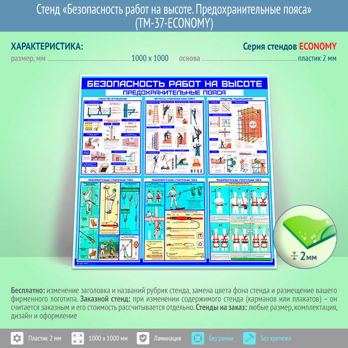 Стенд «Безопасность работ на высоте. Предохранительные пояса» (TM-37-ECONOMY) в Старом Осколе купить