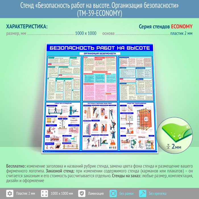 Стенд «Безопасность работ на высоте. Организация безопасности» (TM-39-ECONOMY) в Старом Осколе купить
