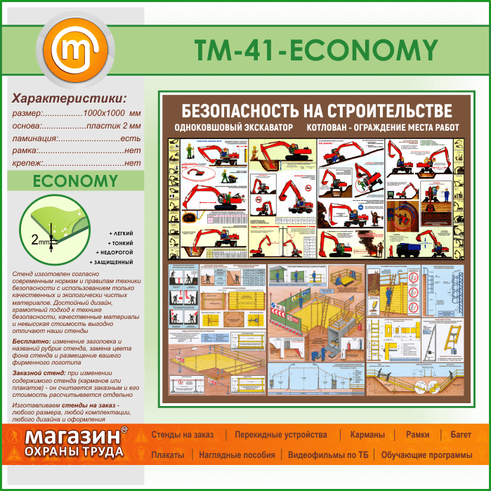 Стенд «Безопасность земляных работ. Экскаватор, котлован» (TM-41-ECONOMY) в Старом Осколе купить