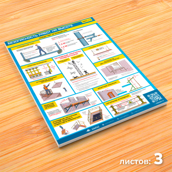Плакаты «Безопасность работ на высоте» (М-52, ламинированная бумага, А2, 3 листа) в Старом Осколе купить