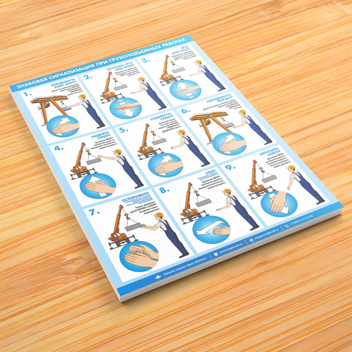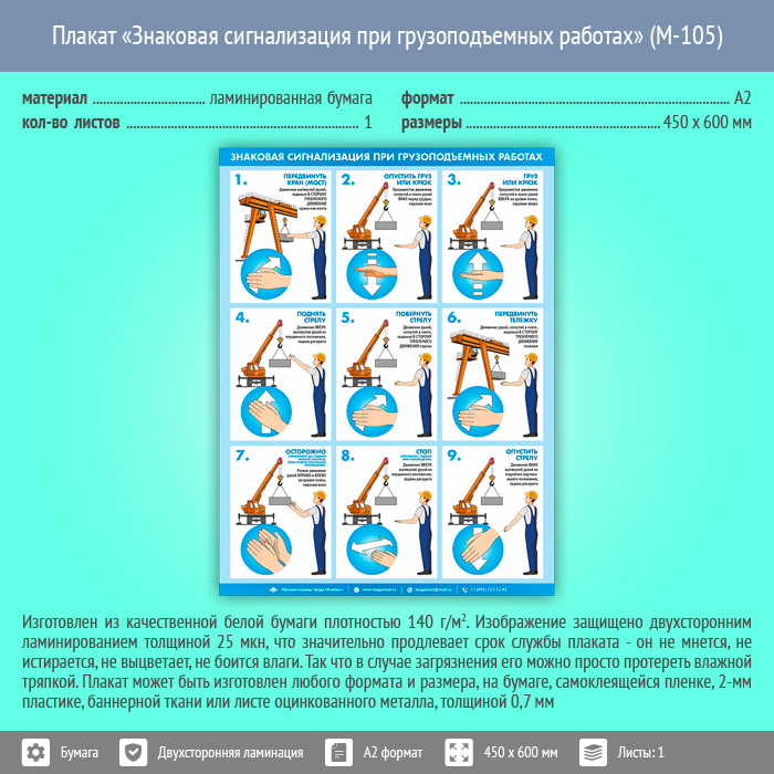 Плакат «Знаковая сигнализация при грузоподъемных работах» (М-105, ламинированная бумага, А2, 1 лист) в Старом Осколе купить