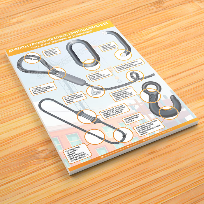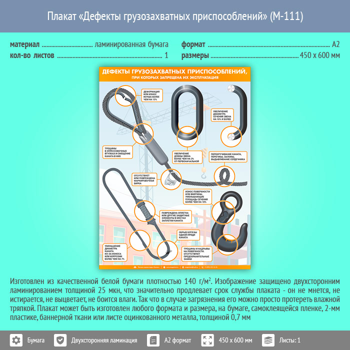 Плакат «Дефекты грузозахватных приспособлений» (М-111, ламинированная бумага, А2, 1 лист) в Старом Осколе купить