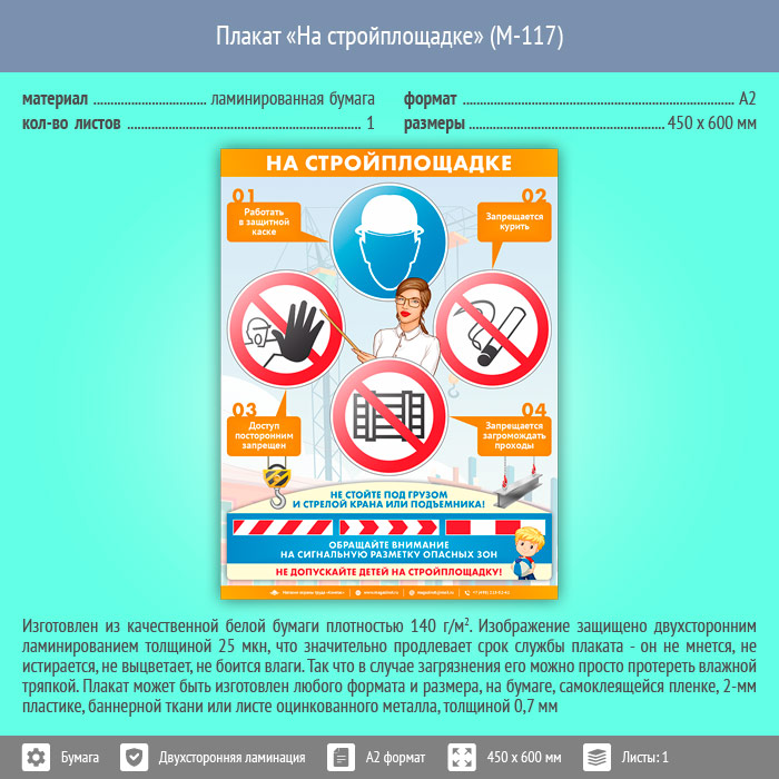 Плакат «На стройплощадке» (М-117, ламинированная бумага, А2, 1 лист) в Старом Осколе купить