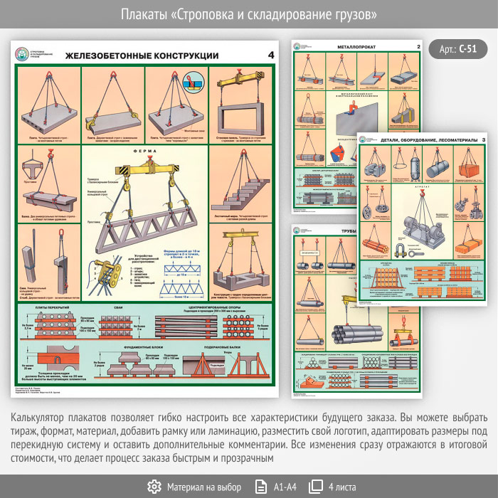 Плакаты «Строповка и складирование грузов» (С-51, 4 листа) в Старом Осколе купить