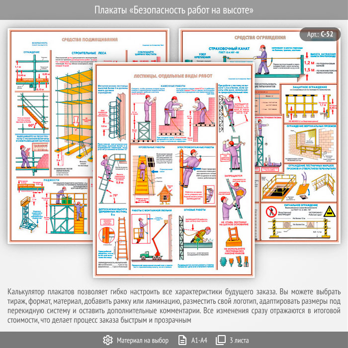 Плакаты «Безопасность работ на высоте» (С-52, 3 листа) в Старом Осколе купить