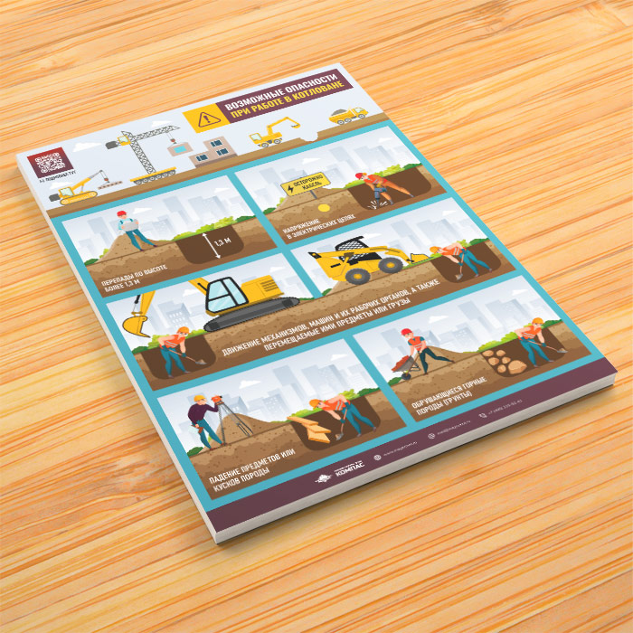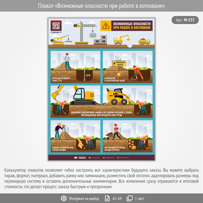 Плакат «Возможные опасности при работе в котловане» с QR (М-137, 1 лист) в Старом Осколе купить