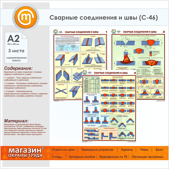 Плакаты «Сварные соединения и швы» (С-46, ламинированная бумага, А2, 3 листа) в Старом Осколе купить