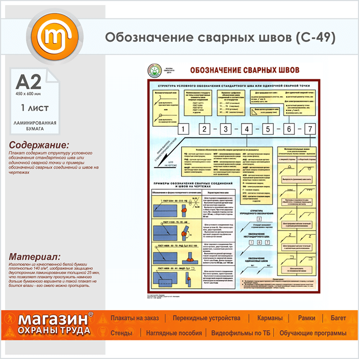 Плакат «Обозначение сварных швов» (С-49, ламинированная бумага, А2, 1 лист) в Старом Осколе купить