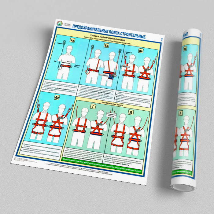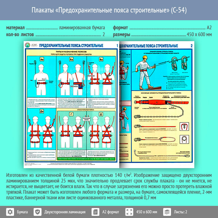 Плакаты «Предохранительные пояса строительные» (С-54, ламинированная бумага, А2, 2 листа) в Старом Осколе купить
