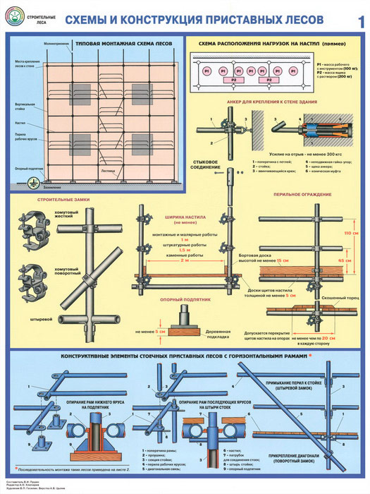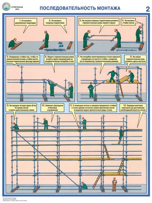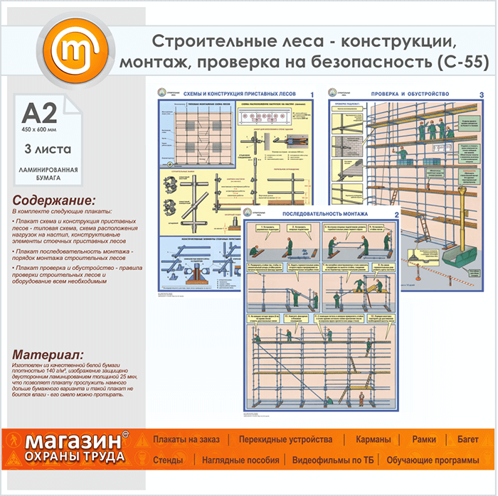 Плакаты «Строительные леса - конструкции, монтаж, проверка на безопасность» (С-55, ламинированная бумага, А2, 3 листа) в Старом Осколе купить