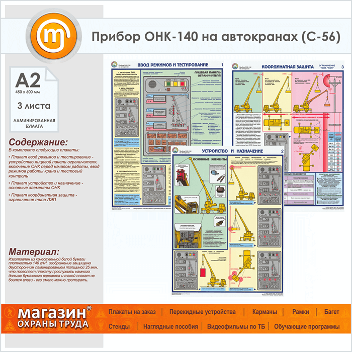 Плакаты «Прибор ОНК-140 на автокранах» (С-56, ламинированная бумага, А2, 3 листа) в Старом Осколе купить