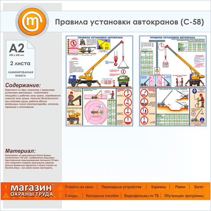 Плакаты «Правила установки автокранов» (С-58, ламинированная бумага, А2, 2 листа) в Старом Осколе купить